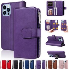 For iPhone 17 16 15 14 Pro Max Women Purse Leather Zipper Detachable Wallet Case