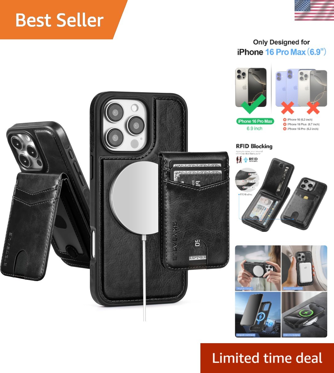 Compatible with Magsafe 2 iPhone 16 Pro Max Wallet Case in Carbon Black