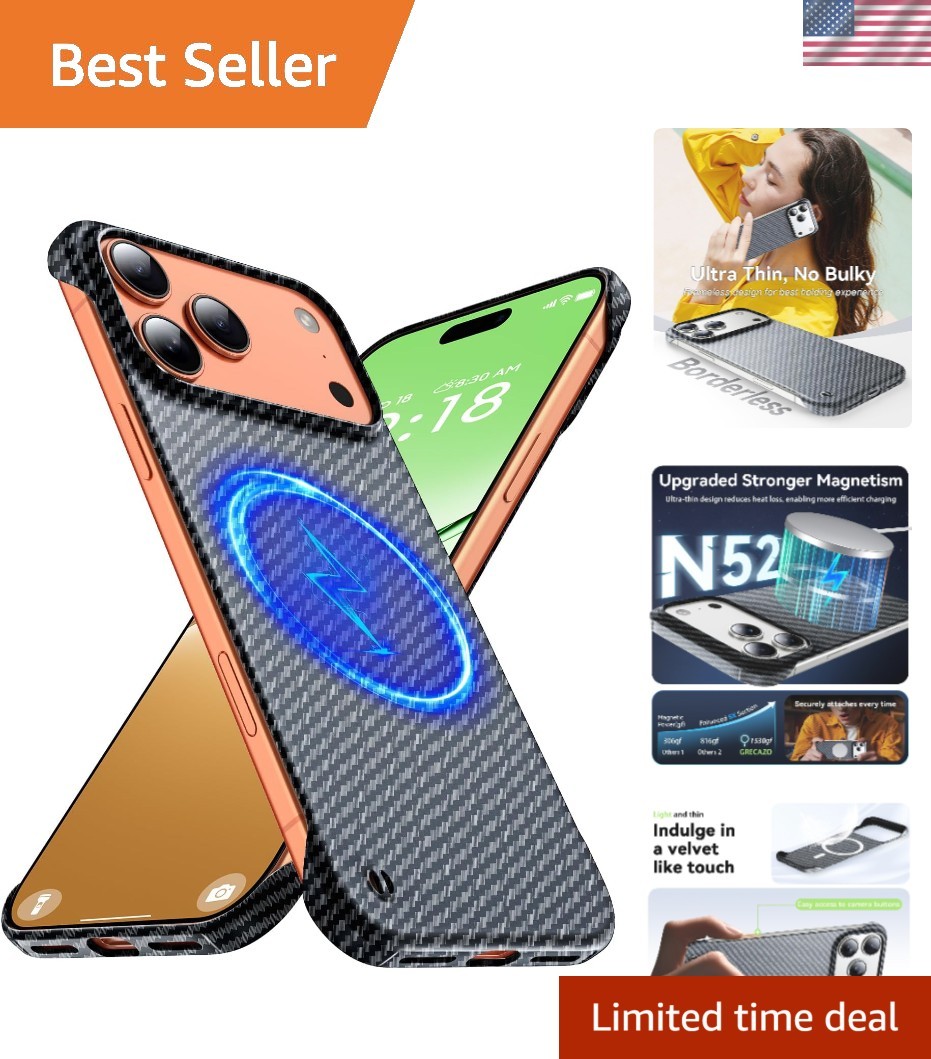 Magnetic Ultra-Thin Frosted Soft Touch Skin Borderless Carbon Fiber Style Tex...