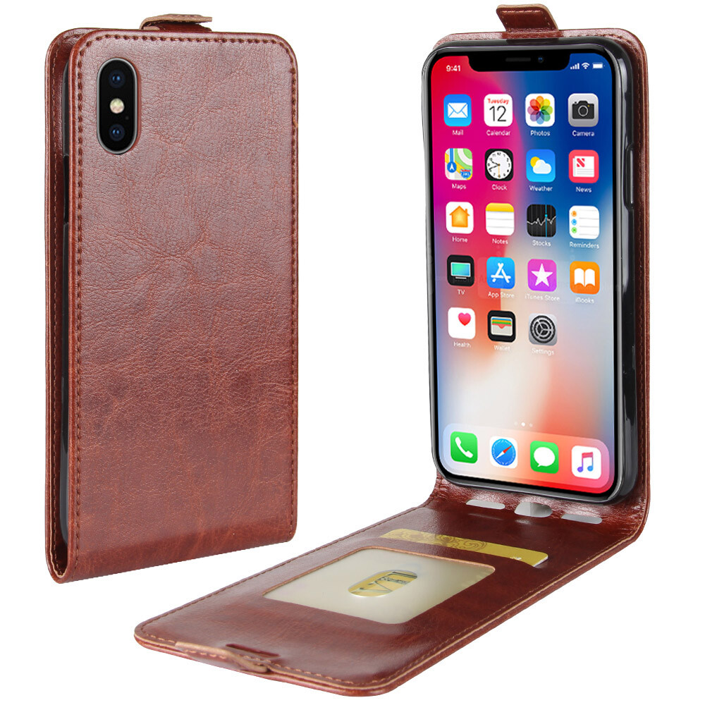 Vertical Flip PU Leather Up & Down Wallet phone Case Cover For iPhone X / XS