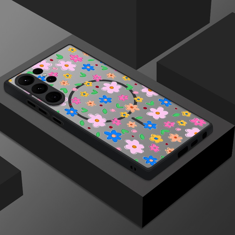 MagSafe Phone Case For Samsung S25 S24 S23 S22 S21 Ultra S20FE Flower Hard Cover