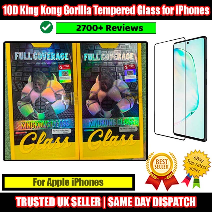 10D King Kong Gorilla Tempered Glass Protector for Apple iPhone Series (Black)
