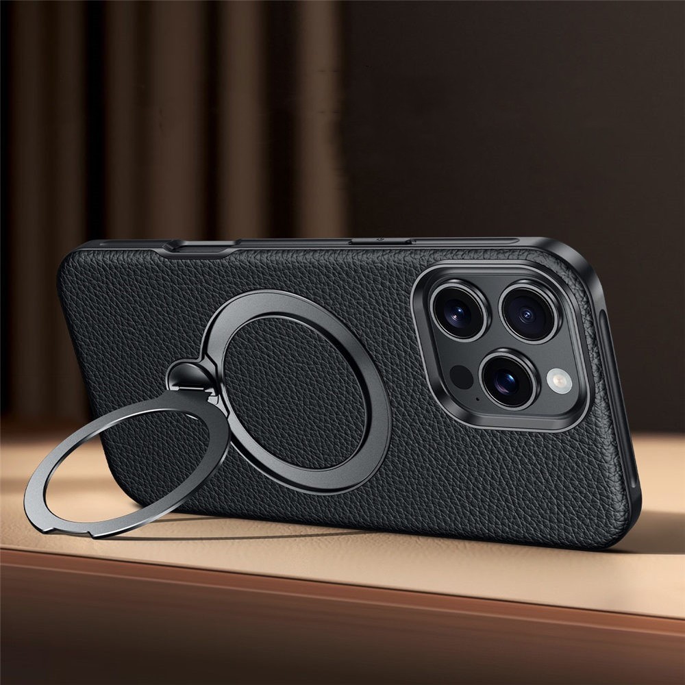 Genuine Cowhide Leather Magnetic Case For iPhone 15 16 Pro Max Bracket Cover