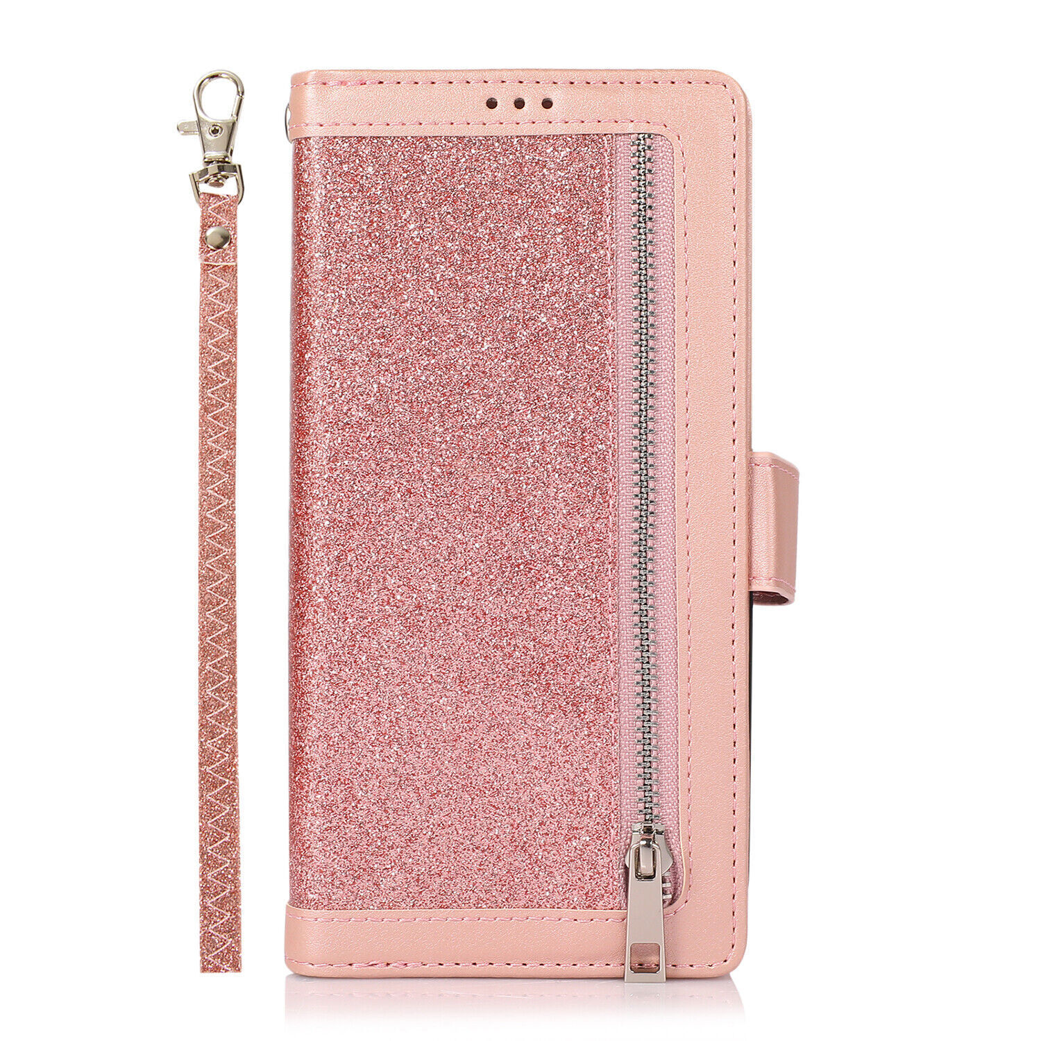 Flip Zipper Glitter Leather Card Wallet Phone Case For iPhone 14 15 Pro Max Plus