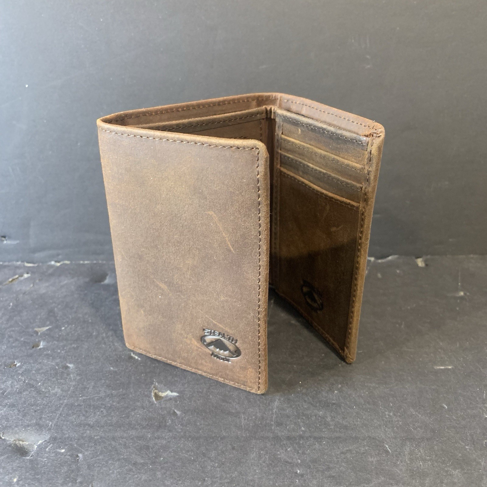 Stealth Mode Trifold Leather Wallet for Men with RFID Blocking Brown