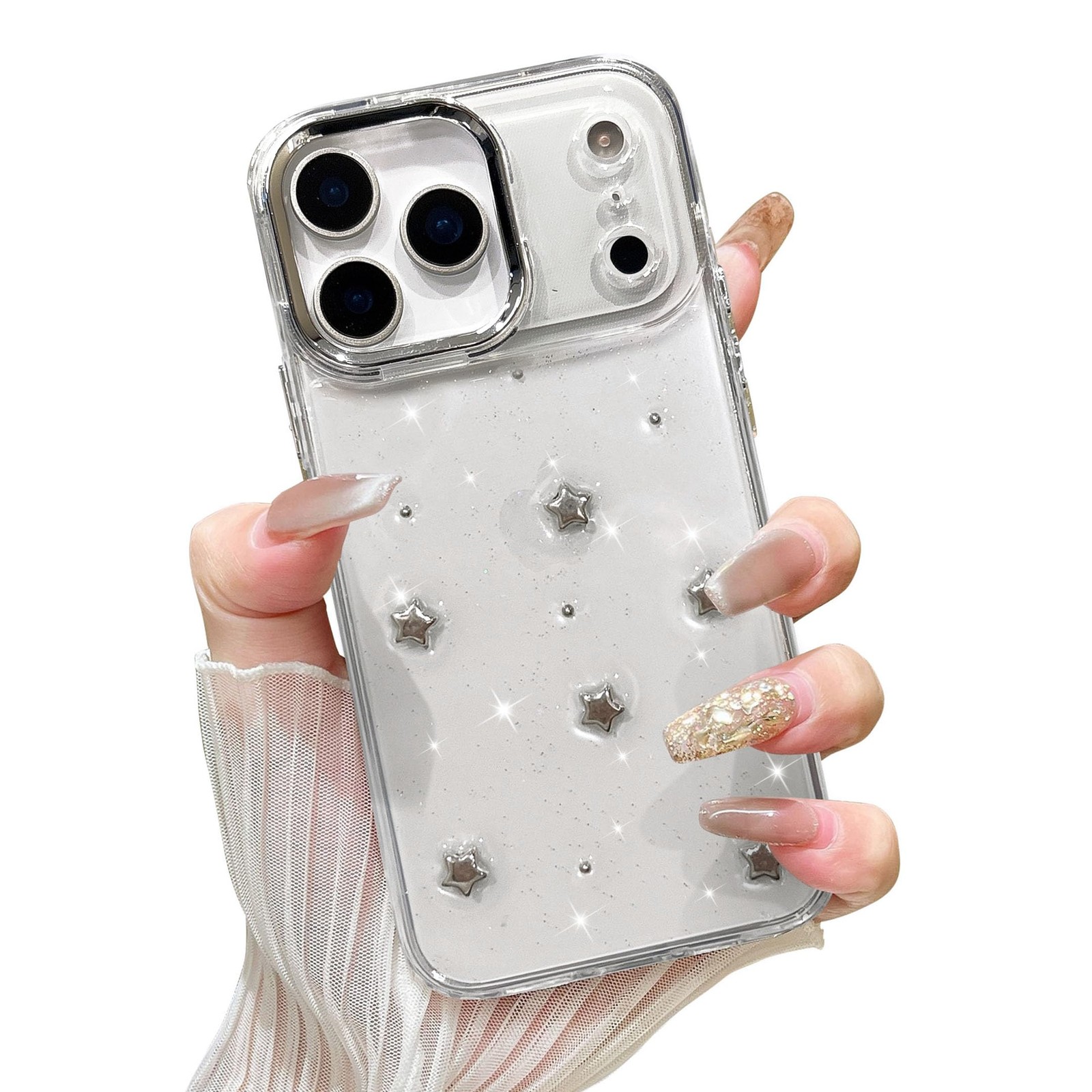 Case for iPhone 17 Pro, Bling Glitter 3D Stars Phone Case Cute Sparkly Crysta...