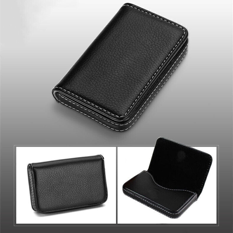 New Black Pocket PU Leather Business ID Credit Card Case Holder Wallet