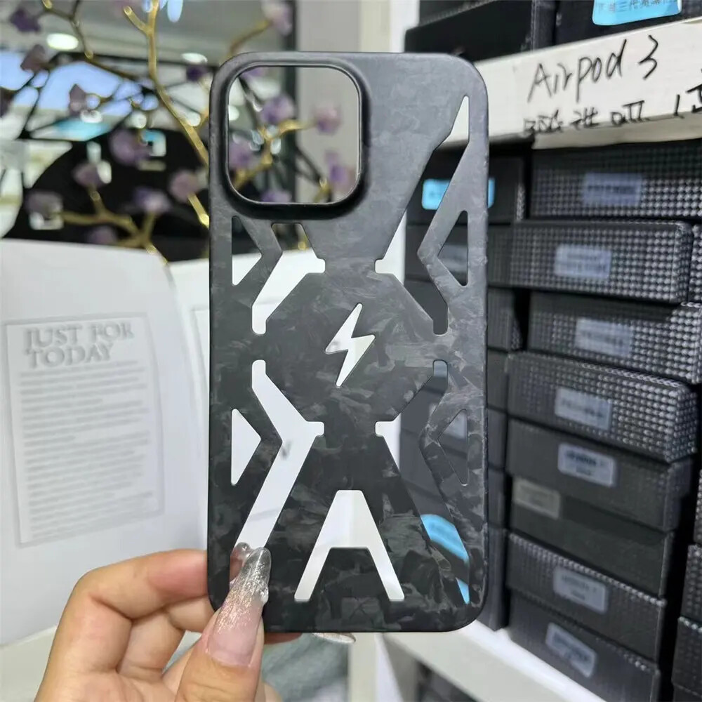 100% Carbon Fiber Case for iPhone 15 Pro Max Matte Irregular Forged Hollow Cover