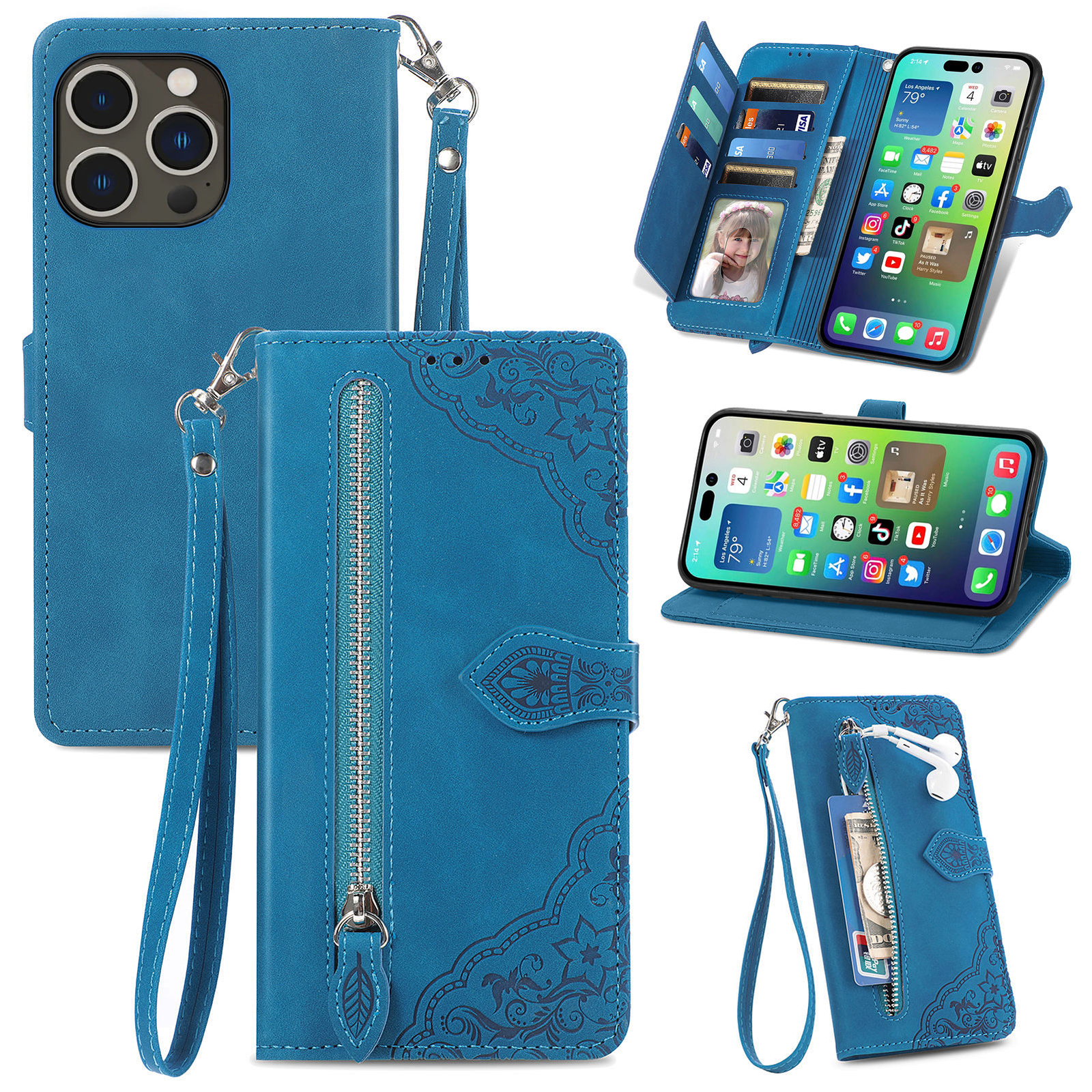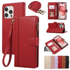 Magnetic Flip PU Leather Zipper Wallet Stand Case For iPhone 16 Pro Max 15 14