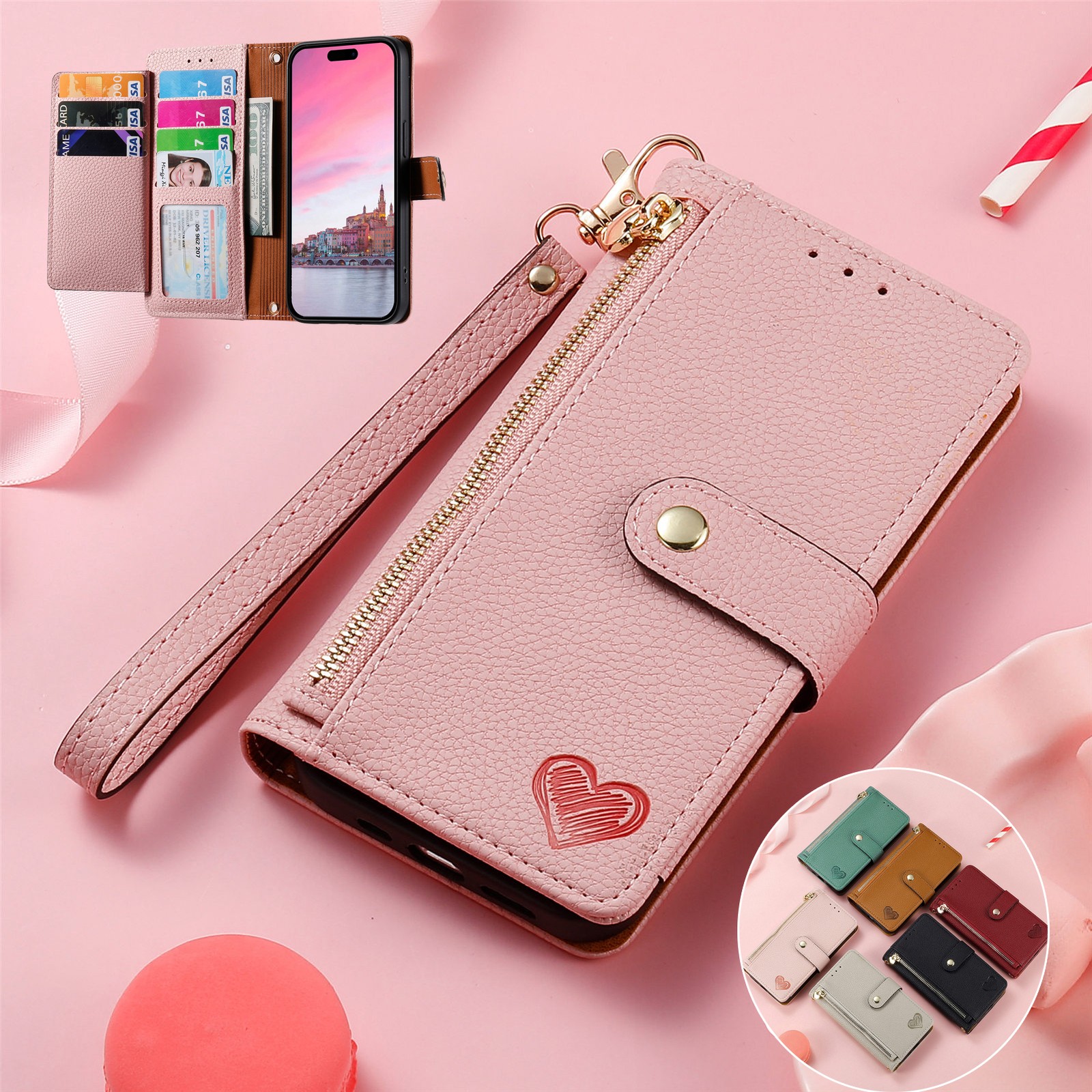 For Vivo Y33T Y21s Y20 Y30 Y27 Y29 Y200 Zip Leather Flip Case Wallet Stand Cover