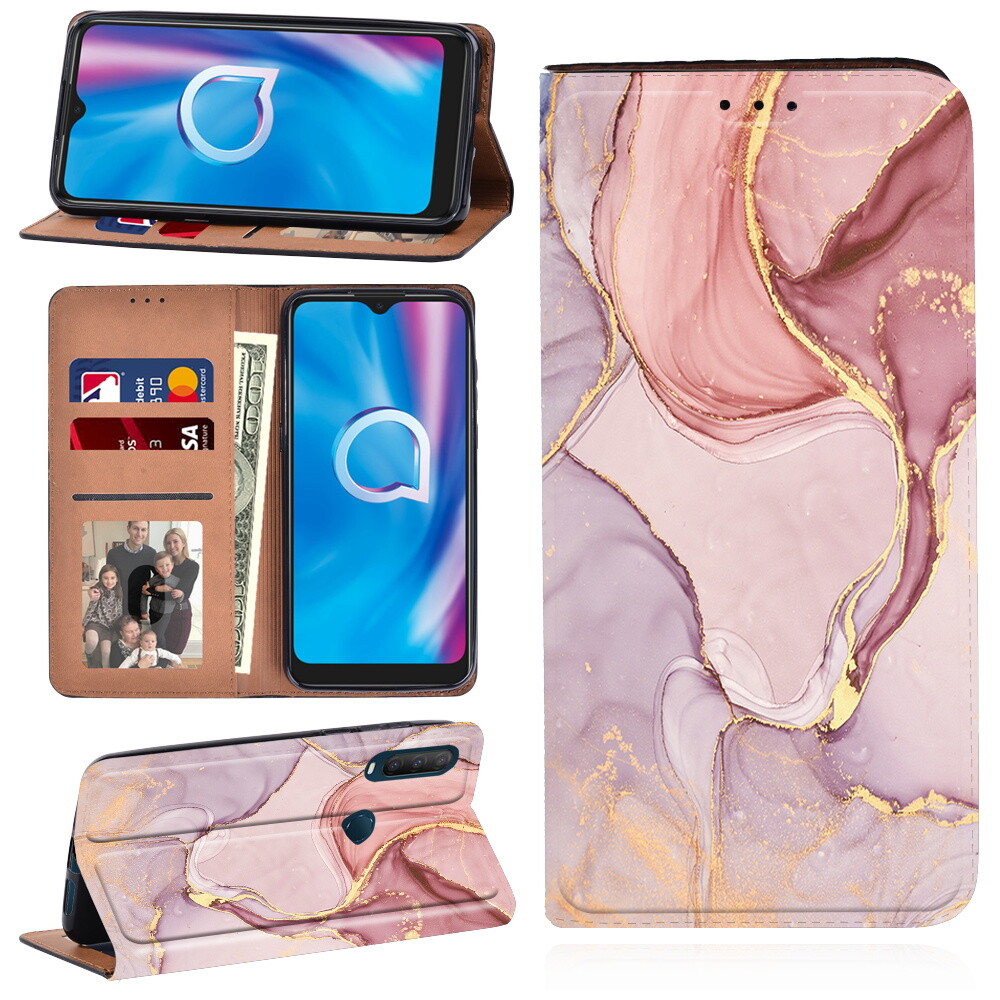 Printed PU Leather Cell Phone Stand Folio Cover Case - For Alcatel 1S/1V/3L 2020