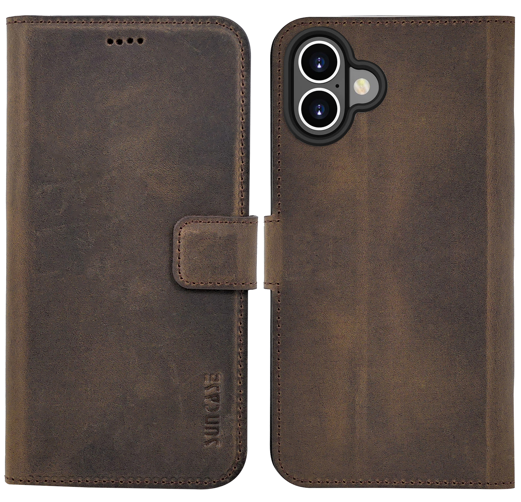 Case for IPHONE 16 Case Book Style Real Leather Case Folding Cover Wallet Case