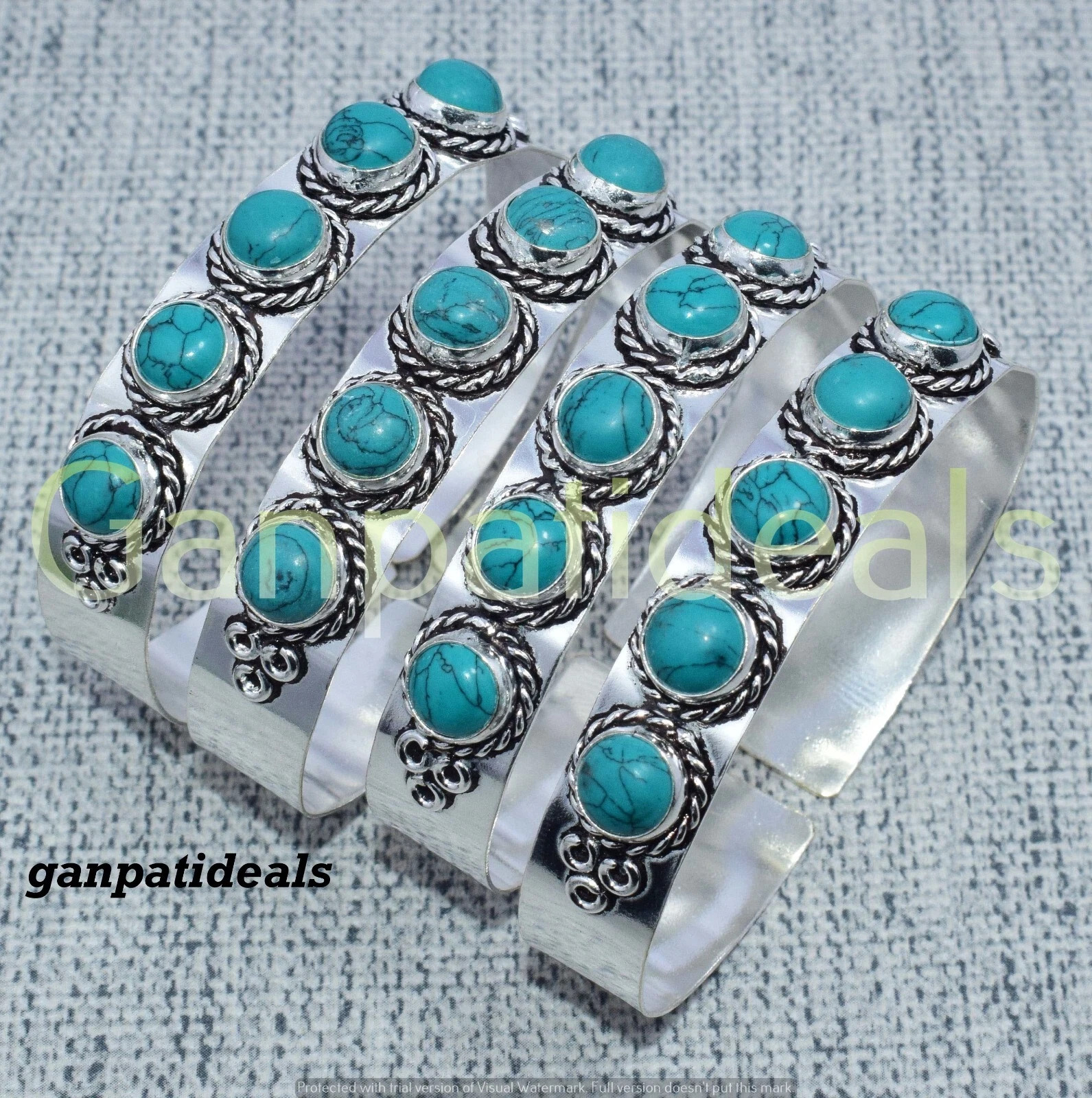 BULK SALE !! Turquoise Gemstone Bangle Wholesale Lot 925 Silver Plated Jewelry