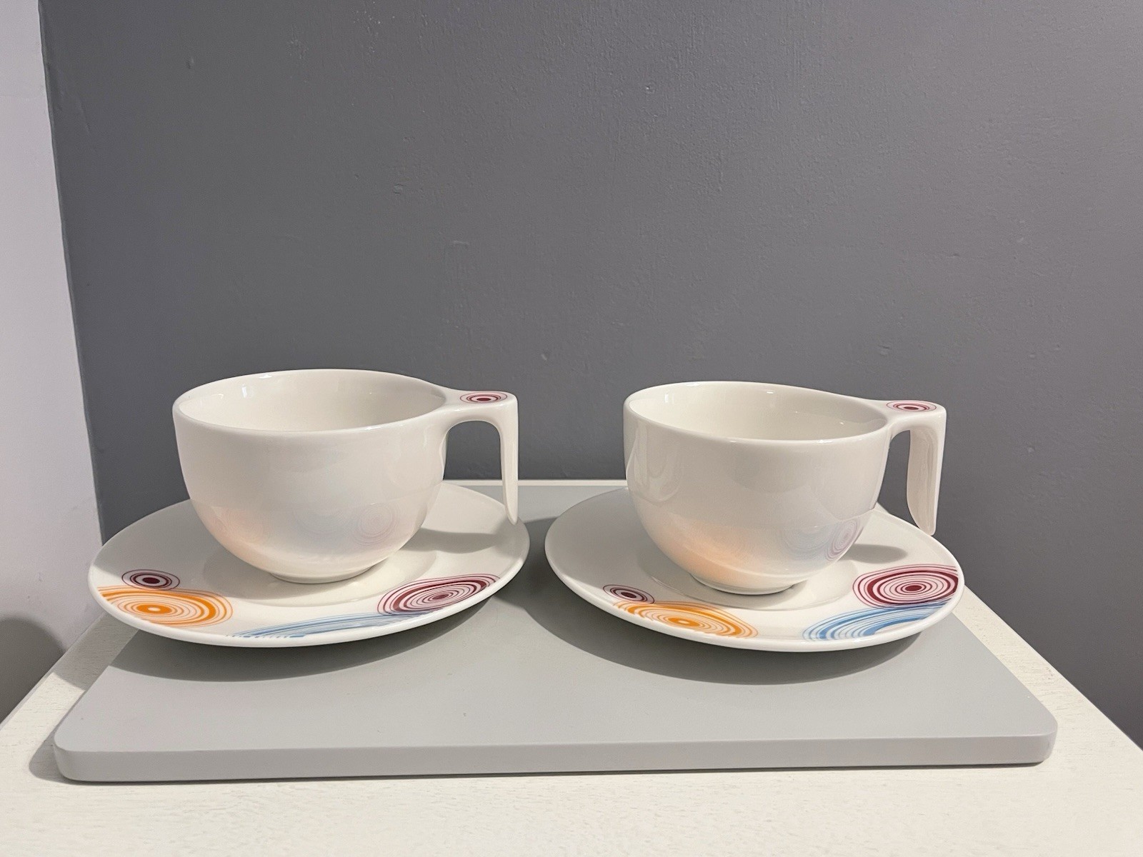 Vintage Villeroy & Boch Coffee Cups X2 Vivo Lucky Loop Porcelain Circles Design