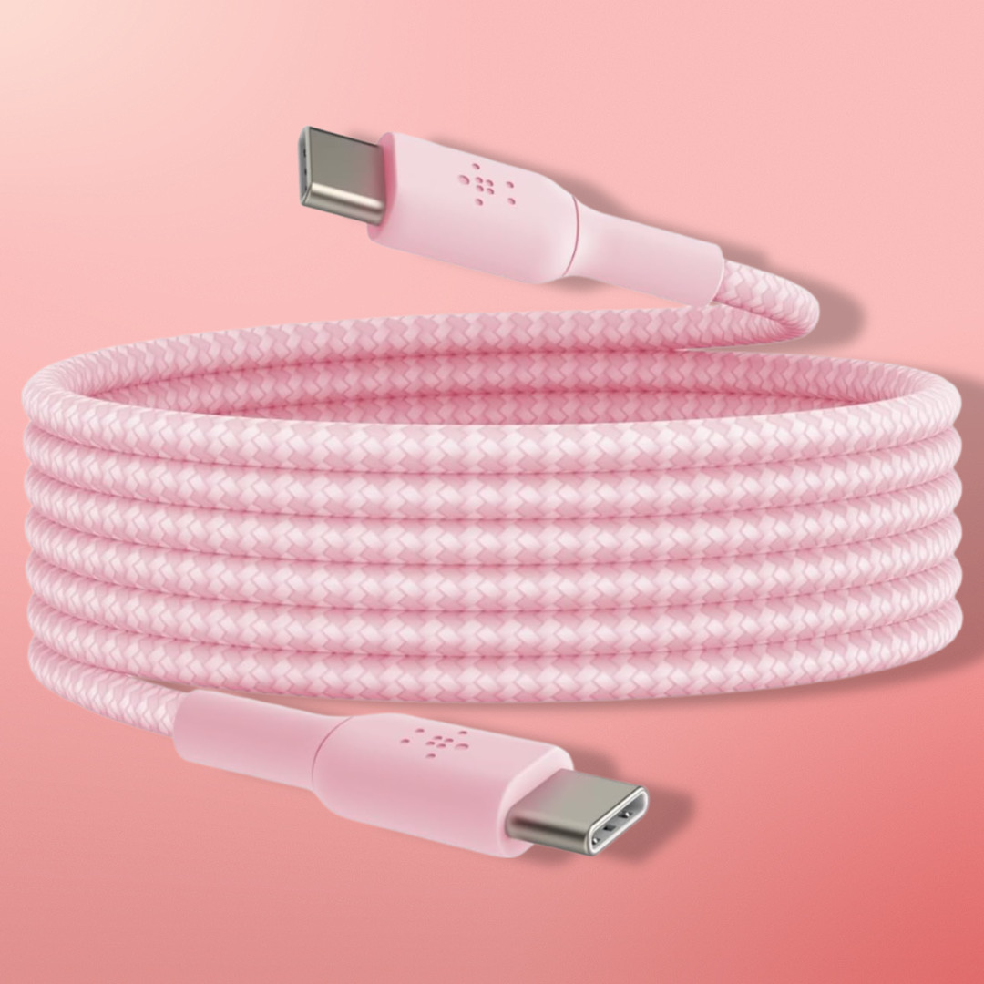 Braided USB-C to USB-C 6.6ft Cable for iPhone Galaxy Pixel iPad Pink