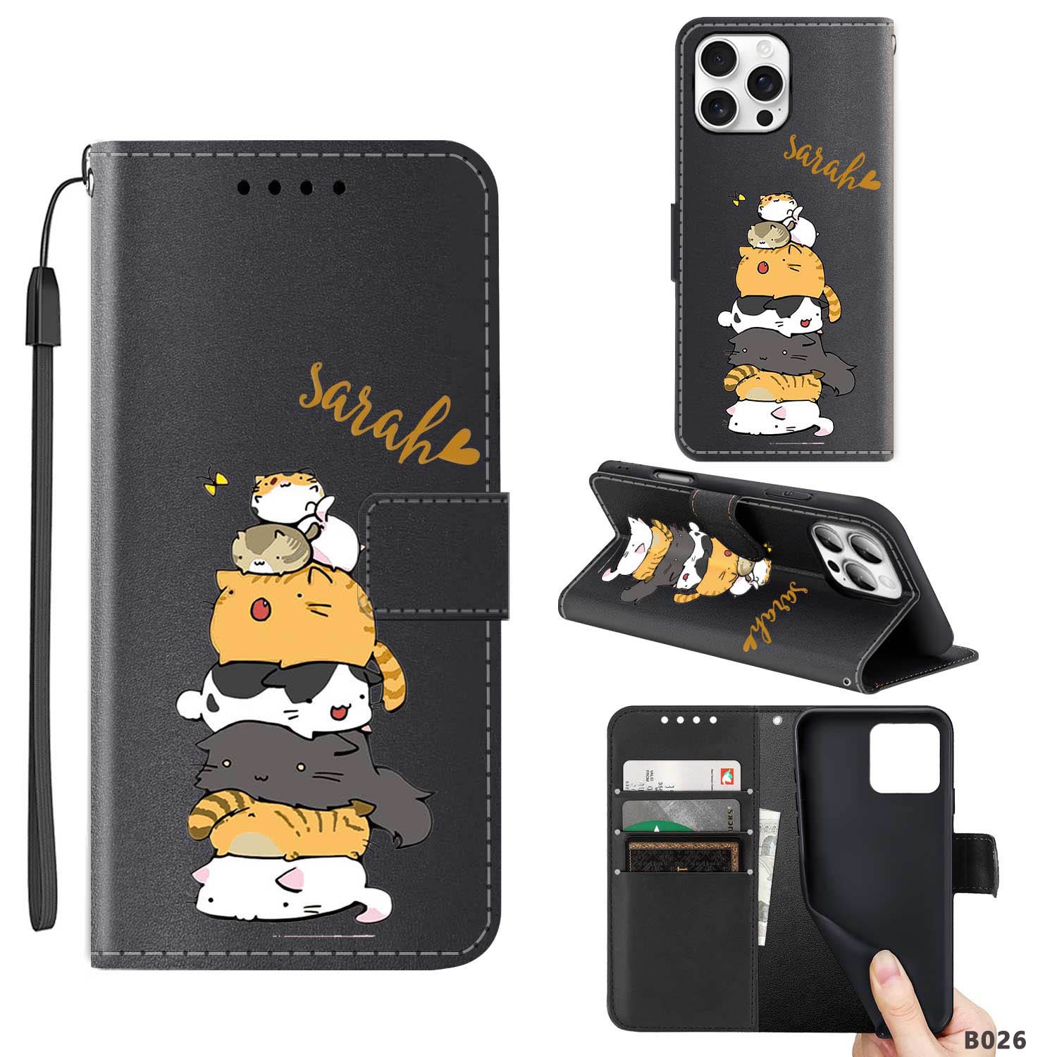 Flip Stand Cover For iPhone 16 14 15 Pro Max 17 12 13 Cats Customized Phone Case