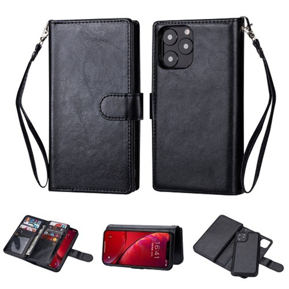 Leather Wallet Removable Magnetic Dual Case Cover BLACK For iPhone 13