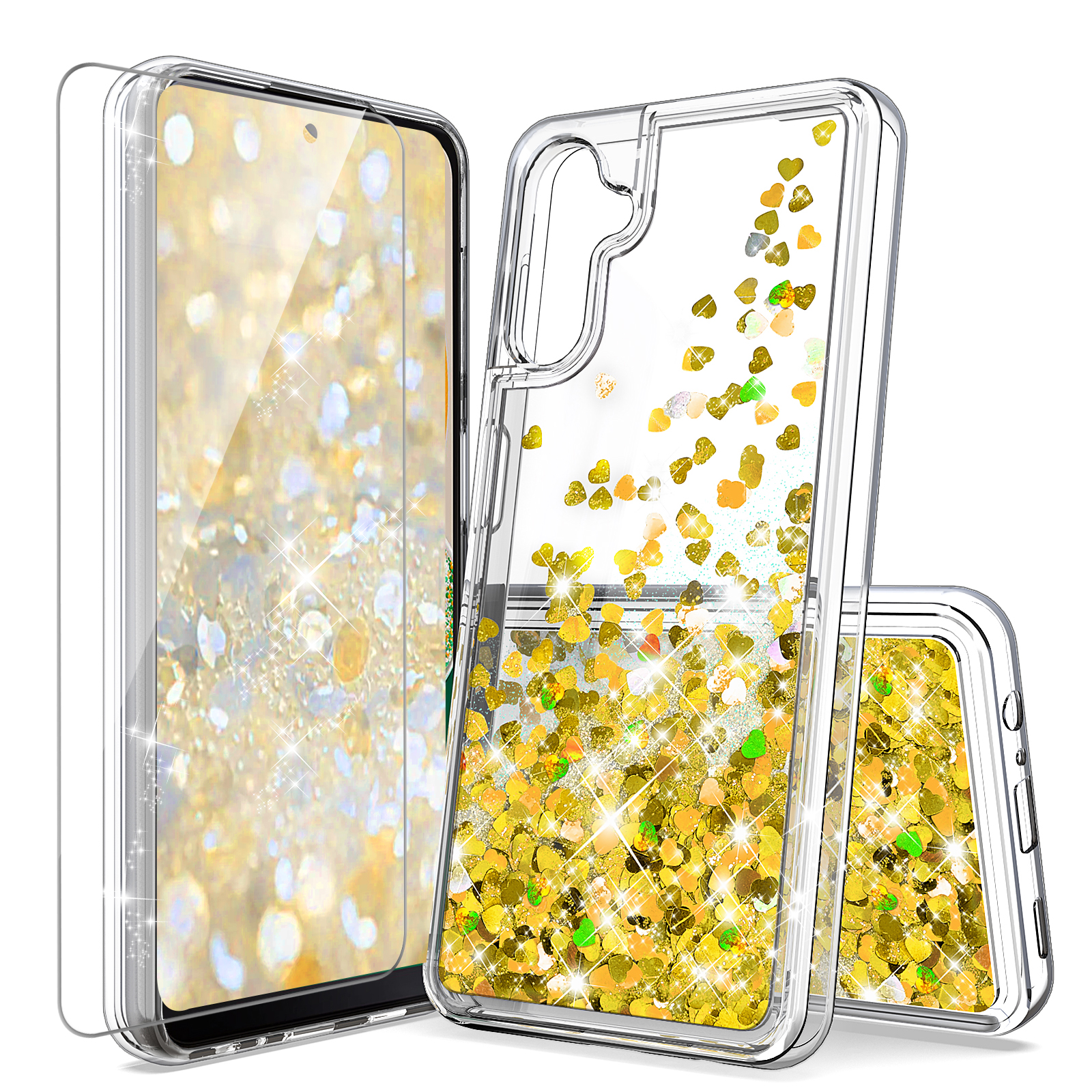 For Samsung Galaxy A13 A04s Clear Case Bling Liquid Glitter Cover+Tempered Glass