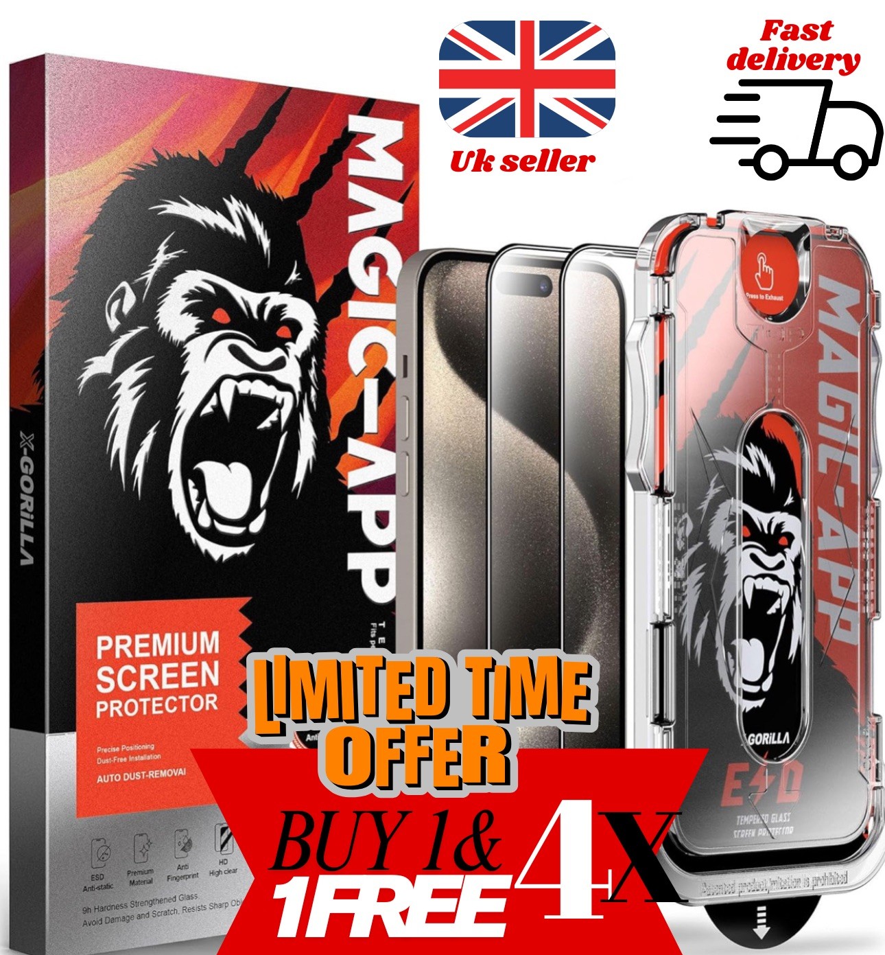 iphone screen protector 13/14/15/16/17pro and pro max 4 pack -premium full cover
