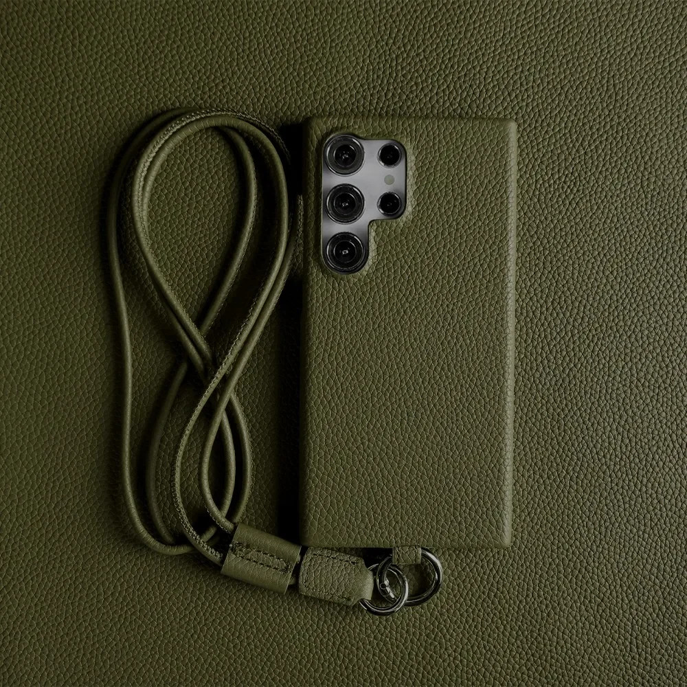 Cowhide Genuine Leather Case for Samsung S25 S24 Ultra S23 Strap Lanyard Cover