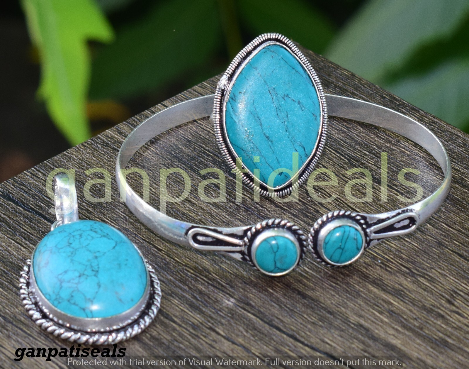 BULK SALE ! Turquoise Gemstone Mix Shape 3pcs Combo 925 Silver Plated Jewelry