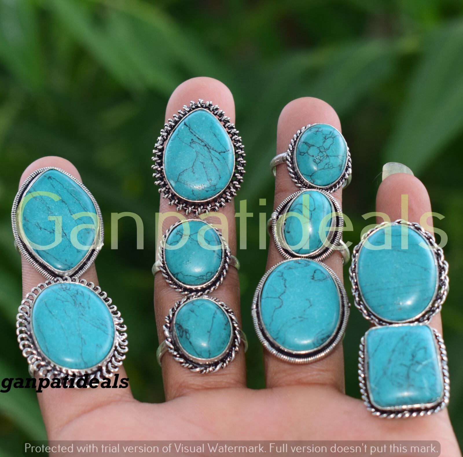 BULK SALE !! Turquoise Gemstone Rings Wholesale Lot 925 Silver Plated Rings Lot