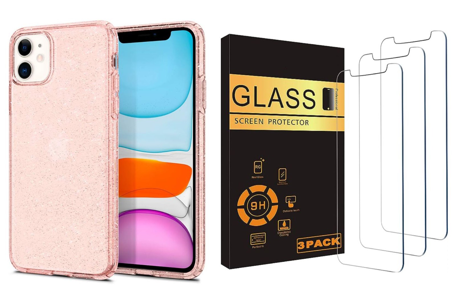 Glitter Clear Case For iPhone 11 Rugged Shockproof Cover + 3 Screen Protectors
