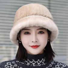 Women's Real Mink Fur Hat Knitted Cap Fashion Bowler Top Hat Cap W Fox Fur Brim