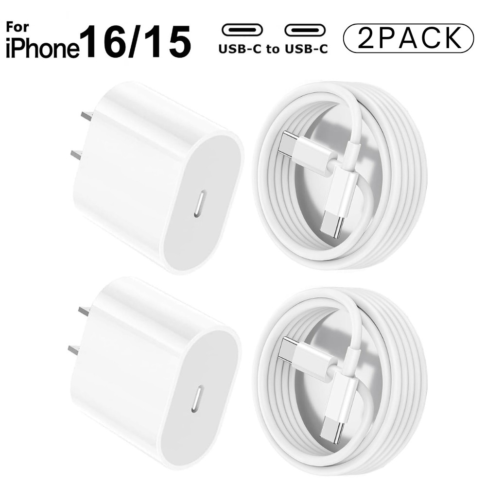 2X For iPhone 15 Pro 16 Plus 16e PD 20W Fast Charger Block USB C To USB C Cable
