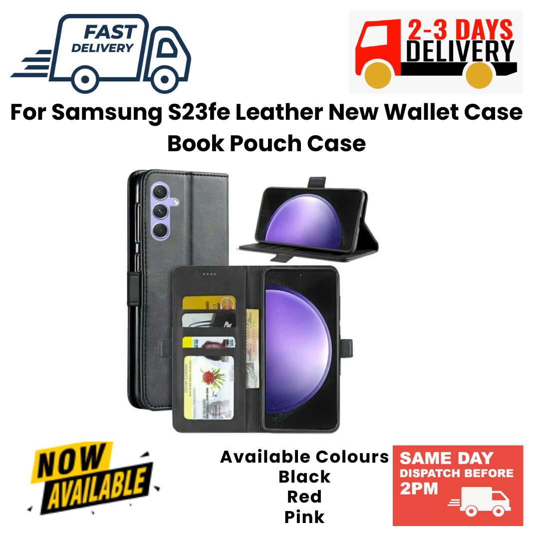 For S23fe Samsung Leather Wallet Case Cover+Tempered Glass Black Pink Red