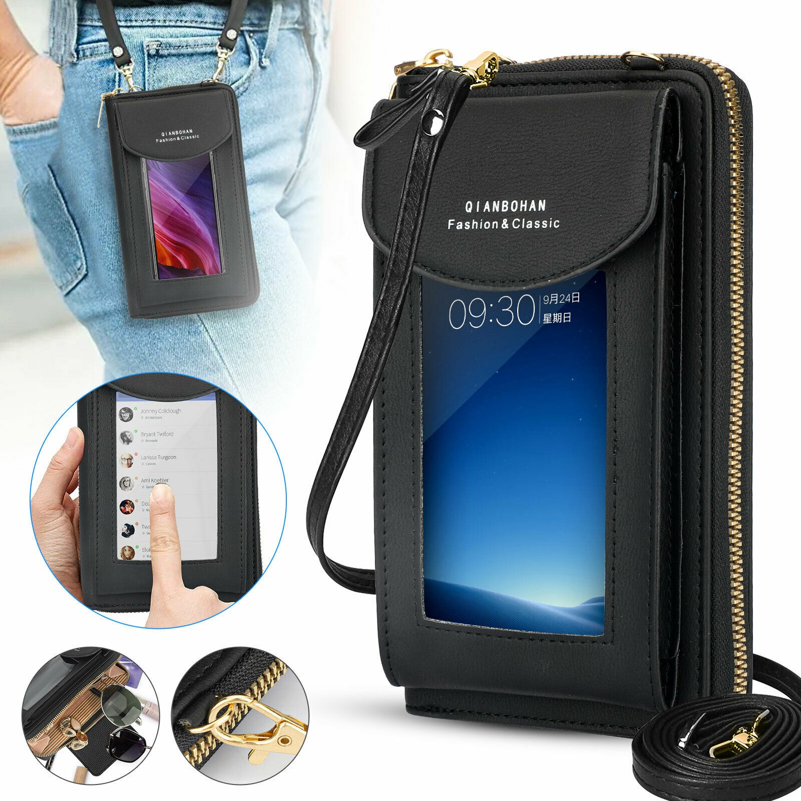 Women Touch Screen RFID Crossbody Cell Phone Bag Wallet Key Pouch Shoulder Purse