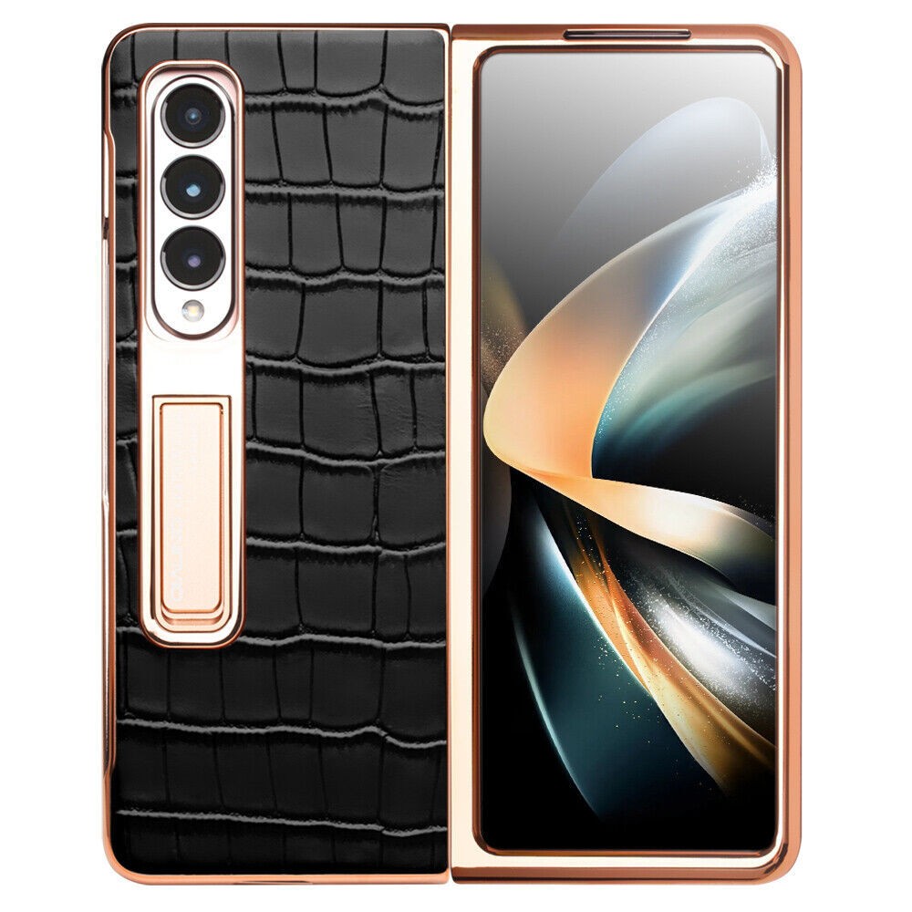 Crocodile Genuine Leather Phone Case For Samsung Z Fold 4 Fold 3 Kickstand Cover