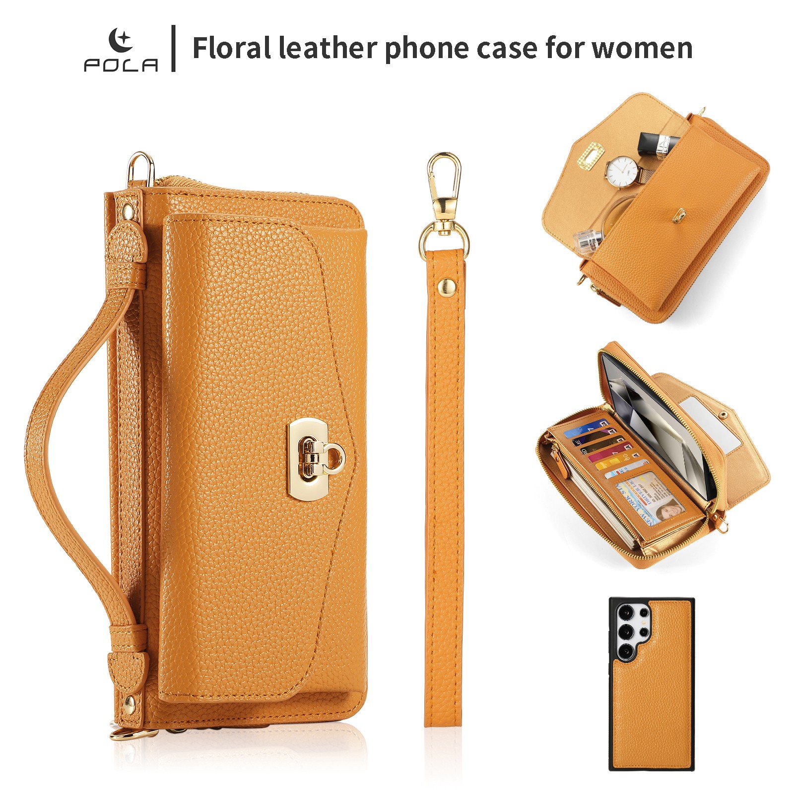 For Samsung Galaxy S26 Ultra S25 S24 S23 Crossbody RFID Leather Case+Hand Strap